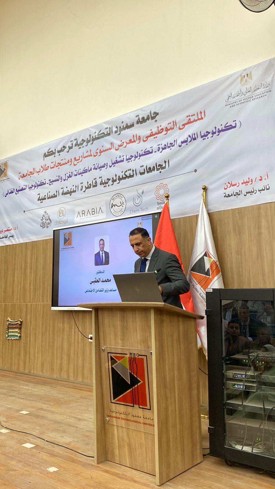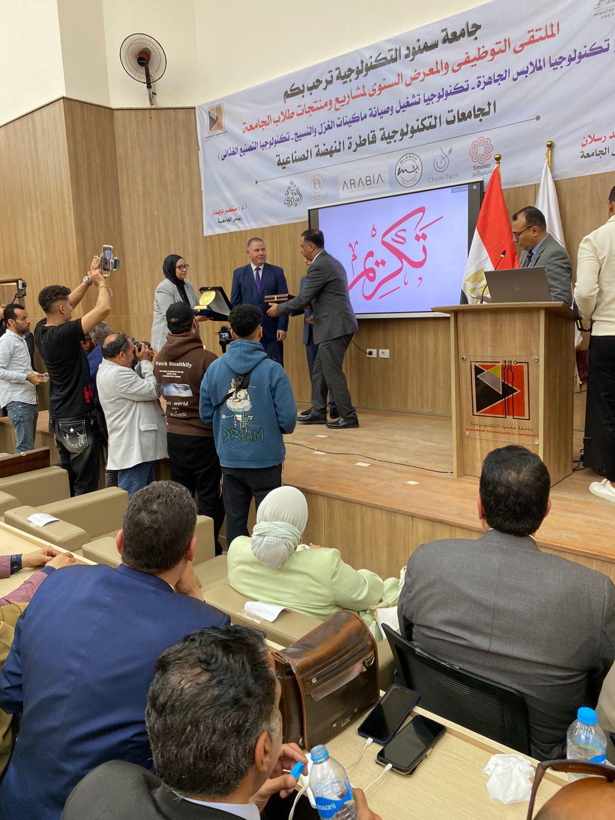 كما شهد الحضور فعاليات الملتقى التوظيفي والمعرض السنوي لمشروعات ومنتجات طلاب جامعة سمنود التكنولوجية، والذي أُقيم تحت شعار «الجامعات التكنولوجية قاطرة النهضة الصناعية»، في إطار توجه الدولة نحو دعم التعليم التكنولوجي وربطه باحتياجات سوق العمل.