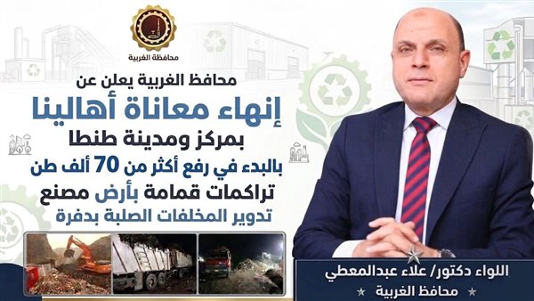 محافظ الغربية: بدء رفع أكثر من 70 ألف طن تراكمات قمامة بأرض مصنع تدوير المخلفات الصلبة بدفرة