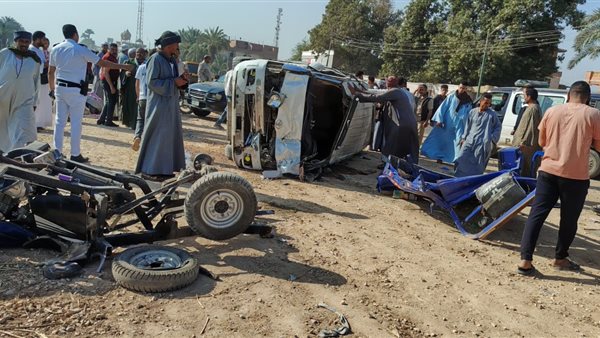 مصرع شخصين وإصابة 12 آخرين في تصادم ميكروباص وتروسيكل بأسيوط