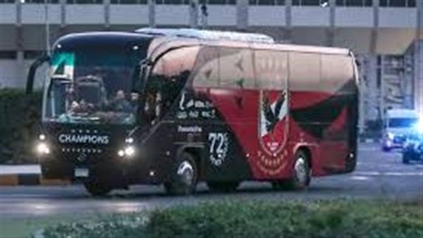 حافلة الأهلي تصل استاد برج العرب استعدادا لمواجهة الإسماعيلي