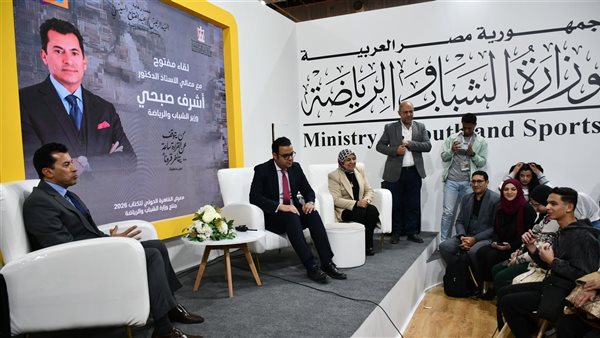 أشرف صبحى يتفقد جناح وزارة الشباب والرياضة بمعرض القاهرة الدولي للكتاب