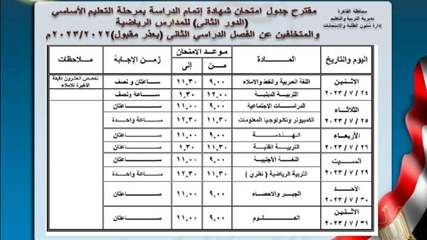 جداول ومواعيد امتحانات الدور الثاني لصفوف النقل والثانوي العام بالقاهرة