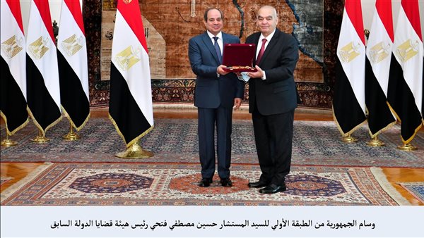 الرئيس السيسي يمنح وسام الجمهورية لرؤساء محكمة النقض وقضايا الدولة السابقين.. صور