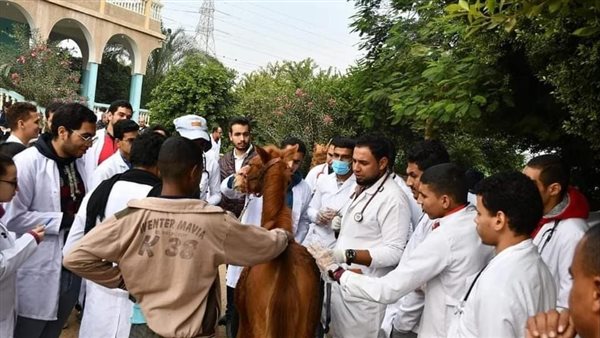 فحص وعلاج 270 حالة في قرية أولاد حمزة خلال قافلة جامعة سوهاج البيطرية