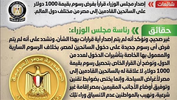 «الحكومة» تنفي فرض رسوم بقيمة 1000 دولار على السائحين القادمين إلى مصر