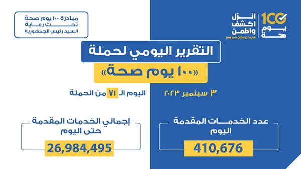 تقديم 11.2 مليون خدمة طبية مجانية ضمن مبادرة 100 يوم صحة حتى اليوم