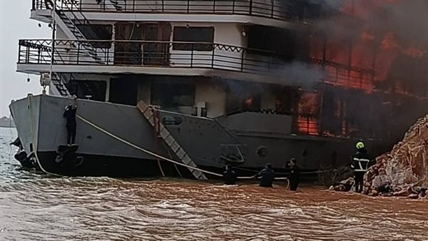حريق هائل بفندق نيلي عائم بأسوان أثناء أعمال الصيانة