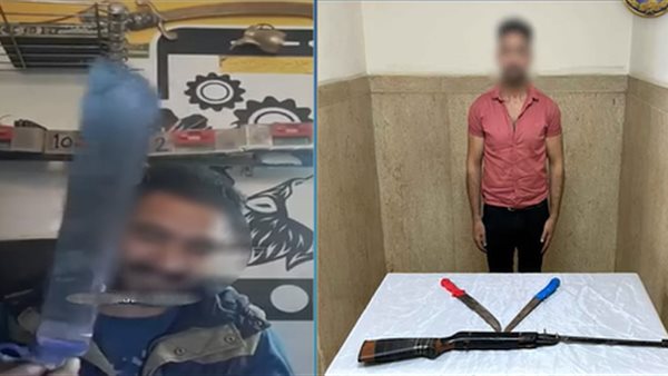 القبض على صاحب محل ظهر بأسلحة بيضاء وبندقية صيد بالجيزة
