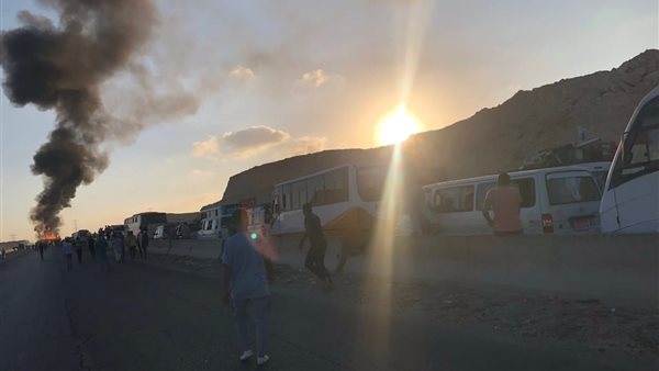 اشتعال النيران بسيارة نقل أعلى الطريق الإقليمي بحلوان