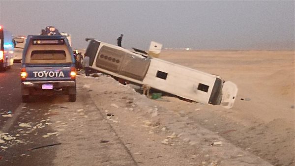 إصابة 32 شخصًا في حادث تصادم أتوبيس وسيارة نقل بالطريق الصحراوي الشرقي