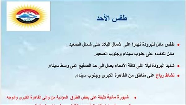 طقس اليوم| درجة الحرارة تصل إلى 11 وشبورة كثيفة على القاهرة