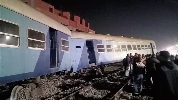 إصابات طفيفة.. خروج عربتي قطار ركاب عن القضبان بمدينة منيا القمح (صور)
