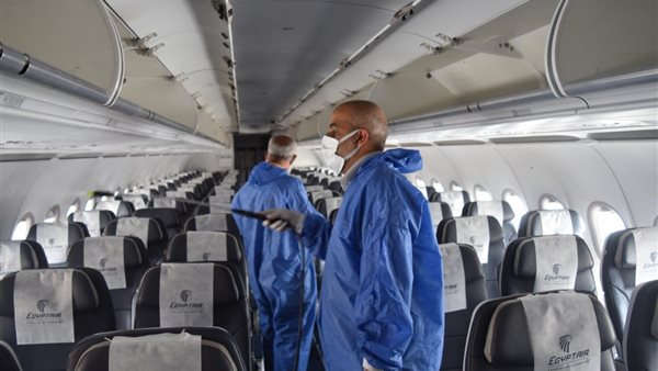حملات تعقيم على متن طائرات مصر للطيران