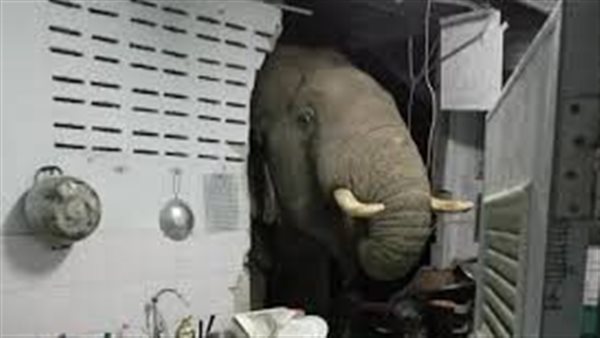 فيل يقتحم منزلا بحثا عن الطعام.. شاهد