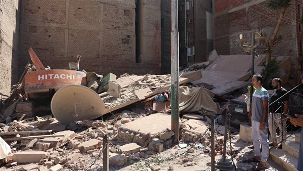 محافظ المنيا يتفقد موقع انهيار منزل خالٍ من السكان أثناء أعمال هدم بجوار فندق لوتس.. صور