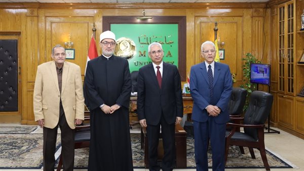 رئيس جامعة المنيا يستقبل مفتي الجمهورية ويشيد بالدور الرائد لدار الإفتاء