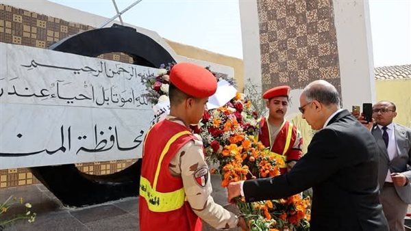 محافظ المنيا يضع إكليلاً من الزهور على النصب التذكاري بمناسبة العيد القومي