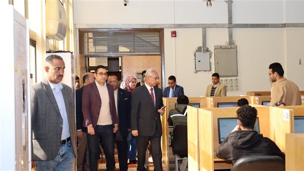 رئيس جامعة المنيا يتفقد سير الاختبارات الإلكترونية لطلاب كليتي الطب والتمريض