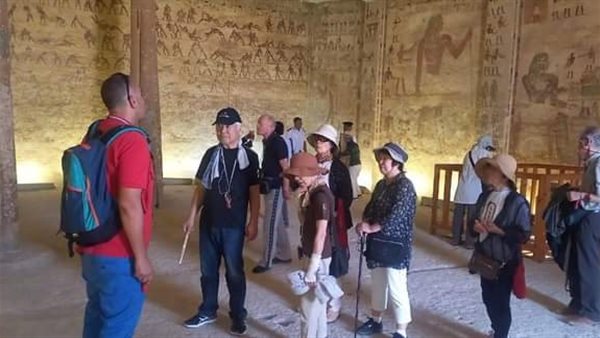 إقبال كبير للسائحين من مختلف الجنسيات على زيارة المناطق الأثرية بالمنيا.. صور