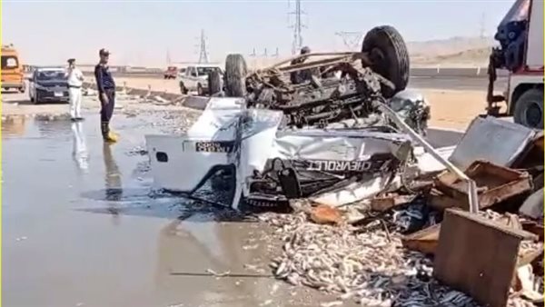 إصابة 3 أشخاص إثر انقلاب سيارة أعلى الطريق الصحراوي بالعياط