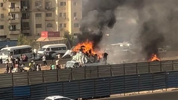 السيطرة على حريق سيارة نقل محملة بـ«أجولة» أعلى الطريق الدائري