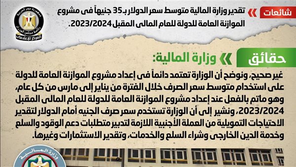 «الحكومة» تنفي تقدير سعر الدولار بـ35 جنيها في مشروع الموازنة الجديدة