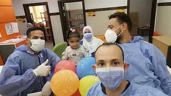أطباء مستشفى عزل العديسات بالأقصر يحتفلون بتعافي طفلة من كورونا
