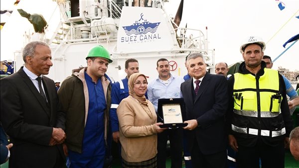 رئيس «قناة السويس» يشهد مراسم رفع العلم المصري على القاطرة الجديدة «أمين زيد»