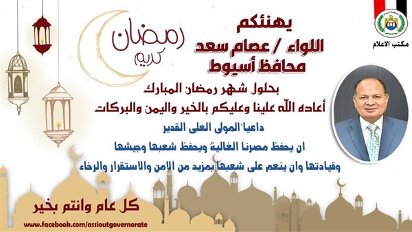 محافظ أسيوط يهنئ الرئيس السيسي بحلول رمضان: سيسجل التاريخ تدعيمكم لأركان الدولة