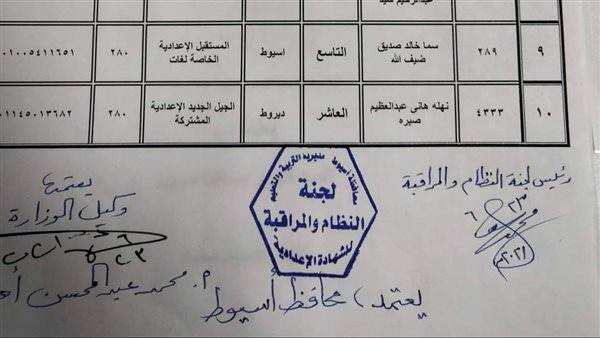 بالأسماء.. إعلان العشر الأوائل على محافظة أسيوط بالشهادة الإعدادية