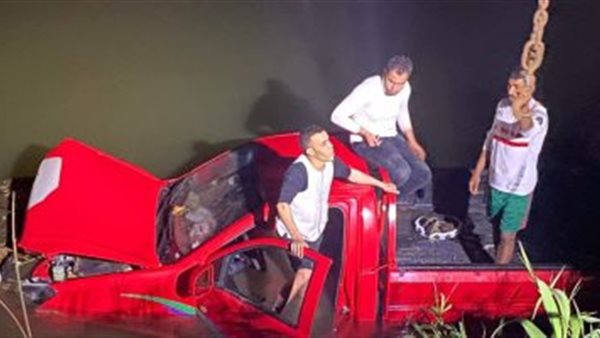 سقوط سيارة ربع نقل وإنقاذ قائدها في الرياح التوفيقي بالدقهلية