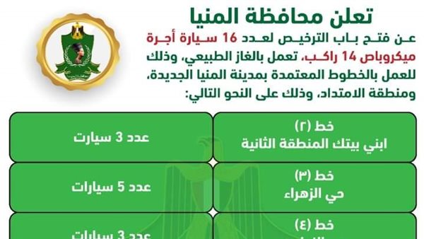 فتح باب التراخيص لـ16 ميكروباص أجرة بالمنيا الجديدة