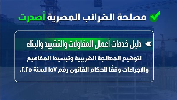 "الضرائب" تصدر دليلًا توضيحيًا شاملًا لخدمات المقاولات وأعمال التشييد والبناء
