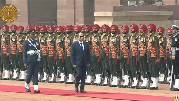 استقبال حافل للرئيس السيسي لدى وصوله نيودلهي للمشاركة في احتفالات الهند بيوم الجمهورية
