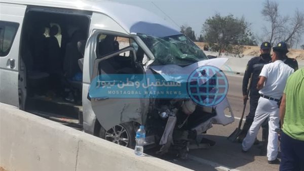 إصابة 25 شخصاً إثر تصادم سيارتين ميكروباص على صحراوي البحيرة