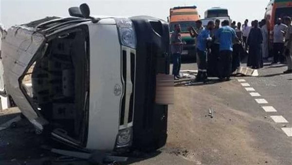 إصابة 7 أشخاص فى حادث انقلاب ميكروباص على الطريق السياحى بالجيزة