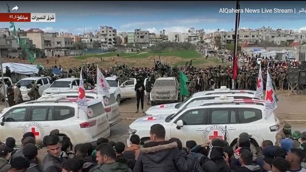 سيارات الصليب الأحمر تصل إلى موقع تسلم محتجزين إسرائيليين في النصيرات