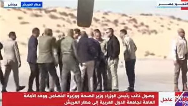 وصول نائب رئيس الوزراء ووزيرة التضامن ووفد الأمانة العامة لجامعة الدول العربية إلى مطار العريش