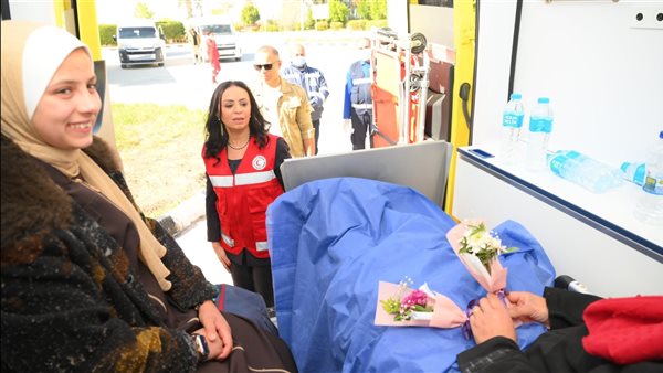 وزيرة التضامن تستقبل عددا من المصابين الفلسطينيين ومرافقيهم بالورود على معبر رفح
