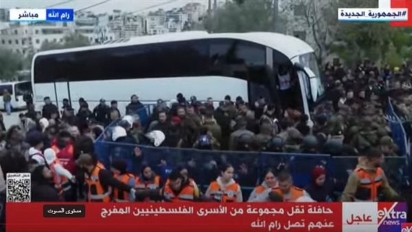 وصول حافلة تقل مجموعة من الأسرى الفلسطينيين المفرج عنهم إلى رام الله