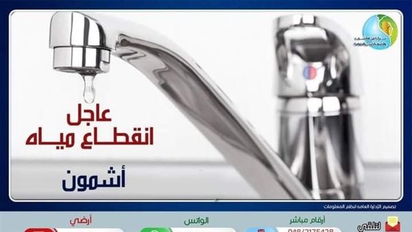 قطع المياه عن شوارع بمدينة أشمون في المنوفية لمدة 3 أيام
