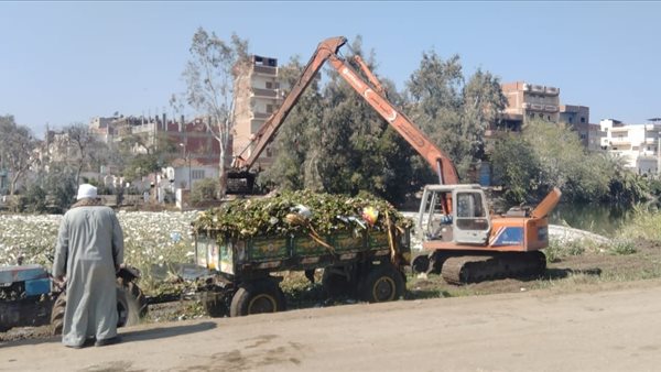 تطهير ترعة الباجورية في الغربية من الحيوانات النافقة والقمامة