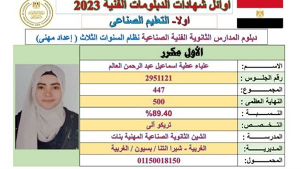 الغربية تحصد المركزين الأولين في «التجاري» و«الصناعي» بنتائج الدبلومات الفنية