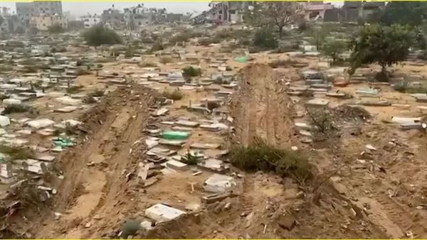 قوات إسرائيلية تدهس وتدمر عشرات القبور في غزة.. صور