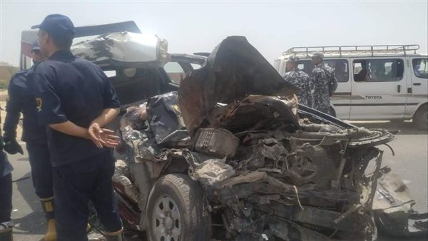 مصرع شخصين وإصابة آخرين إثر تصادم سيارتين بطريق السخنة
