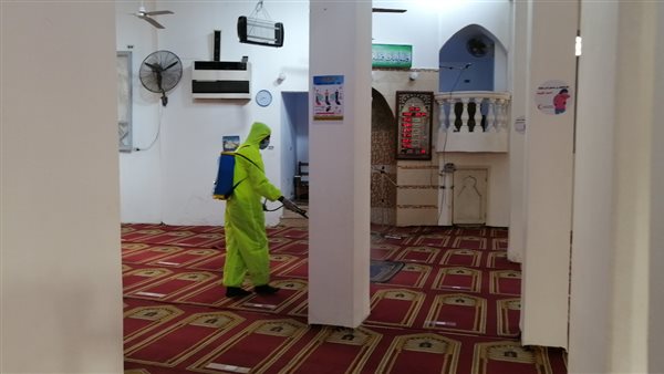 الهلال الأحمر بالسويس يعقم المساجد استعداد لصلاة عيد الفطر المبارك