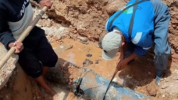 إصلاح خط مياه شارع الجلاء بمحافظة السويس