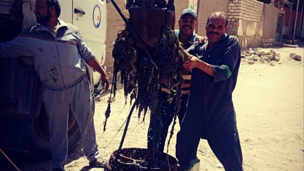 استمرار أعمال تطهير شبكات الصرف الصحي بالقنطرة غرب ومدينة المستقبل
