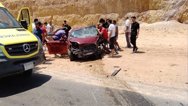 مصرع وإصابة 10 أشخاص بحادث تصادم سيارتين بطريق السخنة