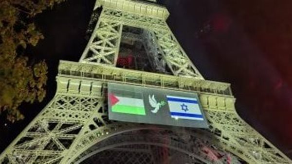 «حمامة سلام وغصن زيتون».. برج إيفل يضيء دعما لمبادرة ماكرون للاعتراف بدولة فلسطين
